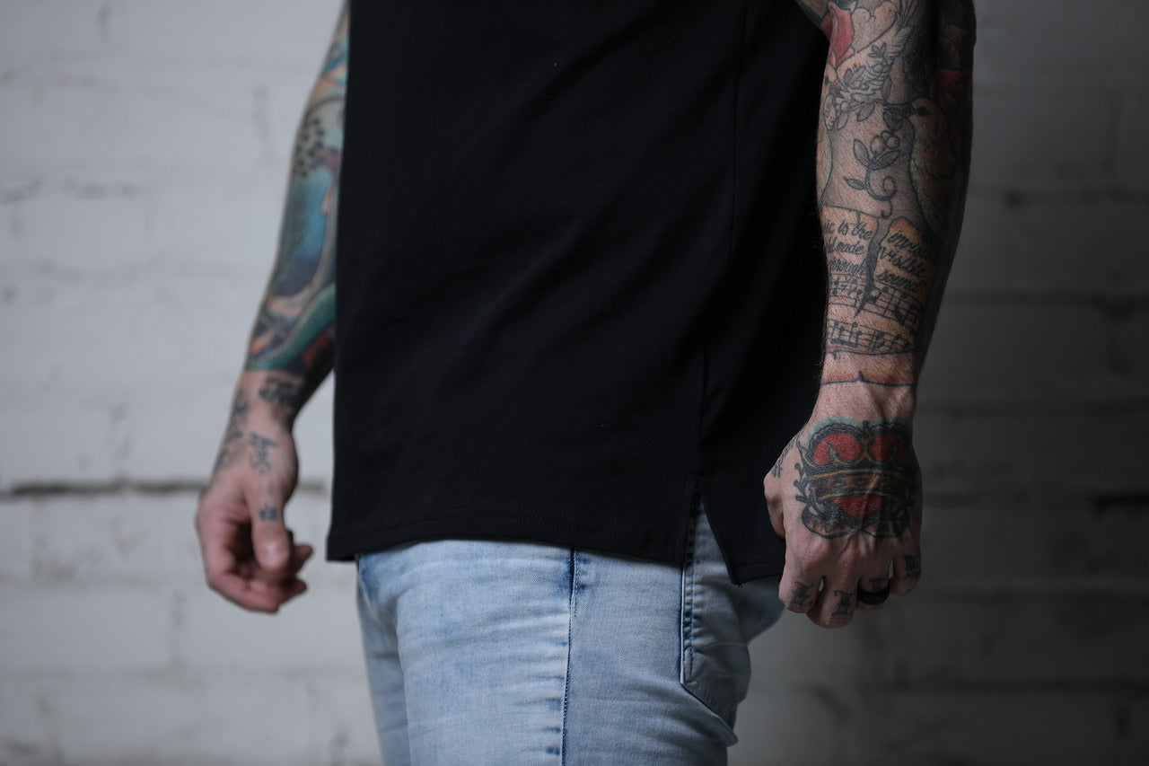 Embroidered Monogram, Custom Neck Tag. 3/8” neck binding, subtle side vents on bottom hem, and short sleeves, designed with superior Airlume combed and ring-spun cotton.