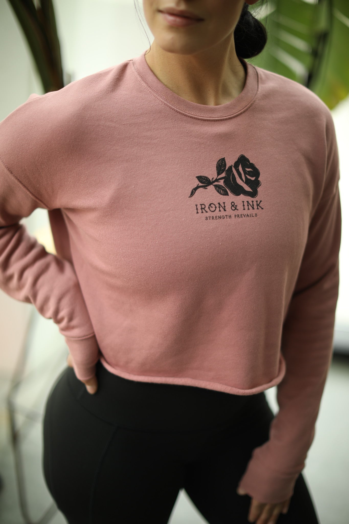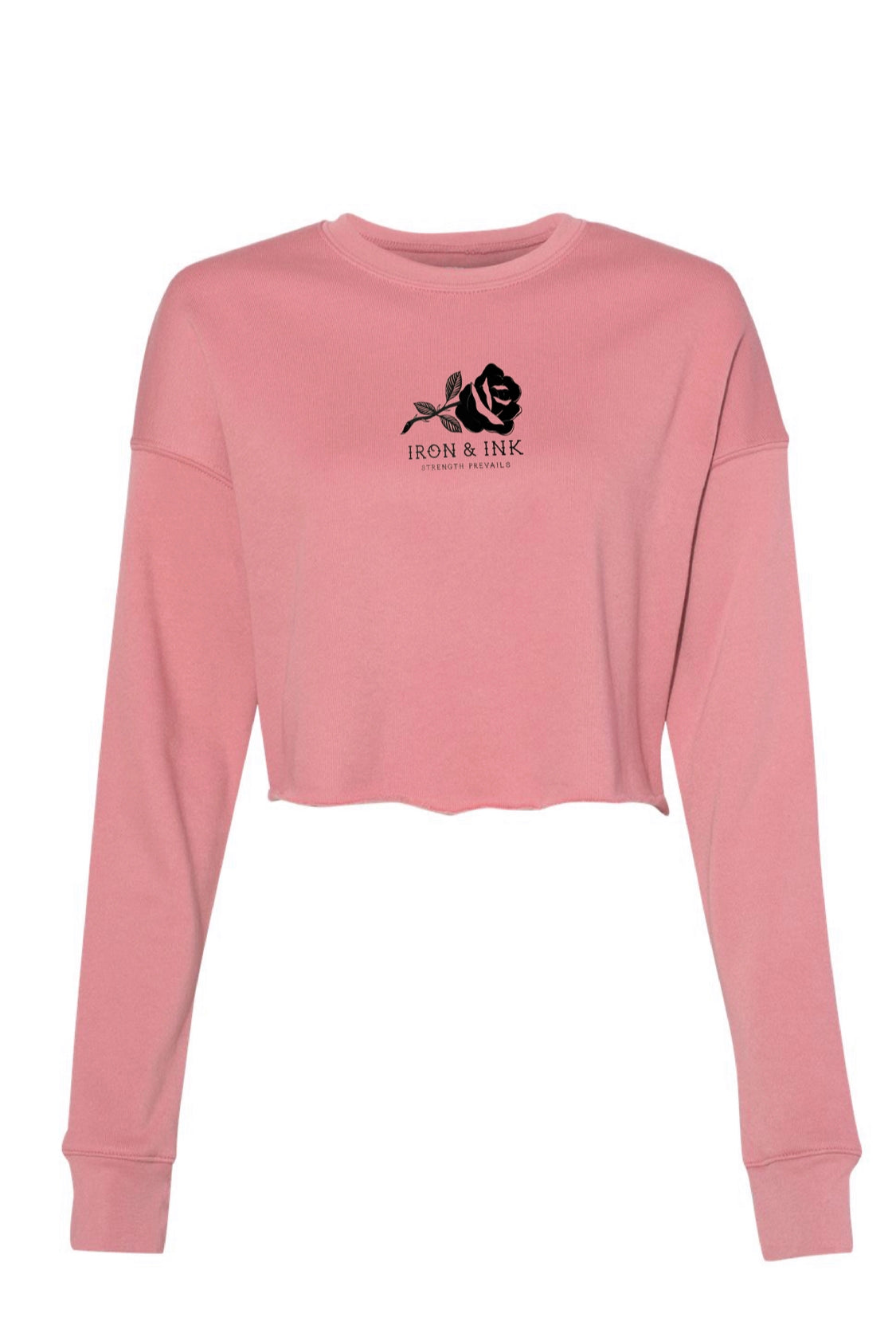 Ladies Strength Prevails Crop Crew Sweater- Mauve