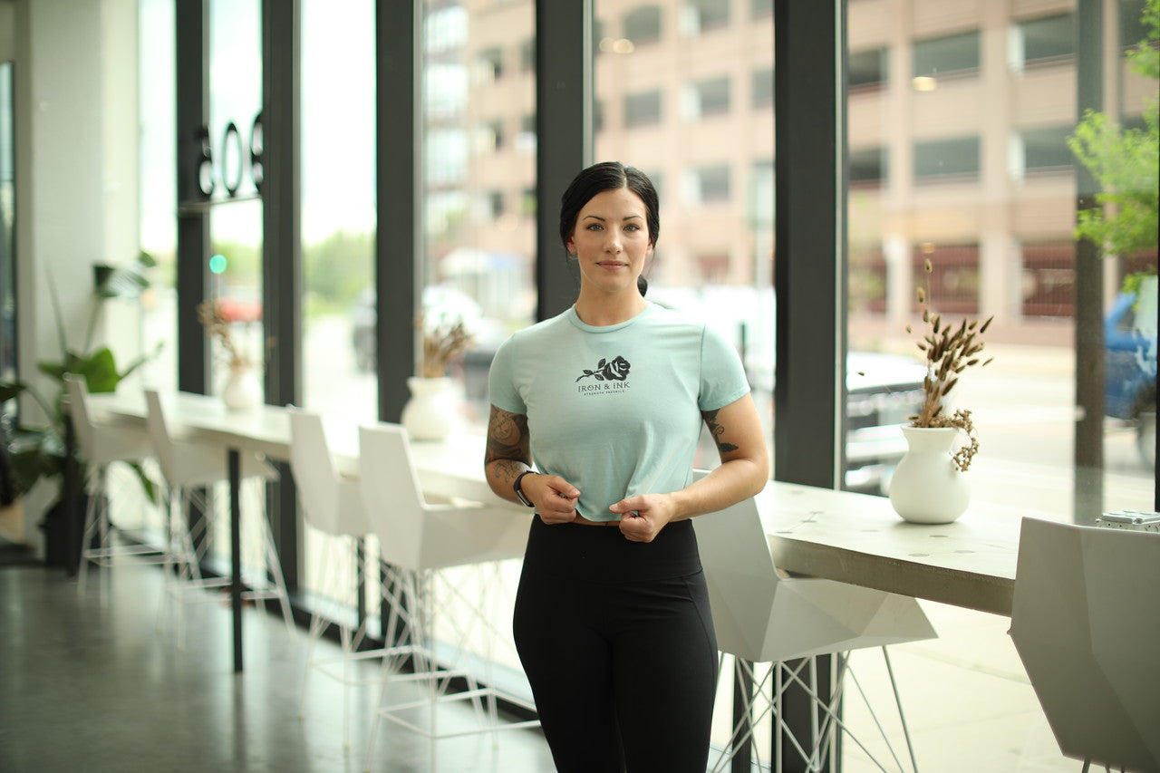 Ladies Strength Prevails Crop Tee- Dusty Blue
