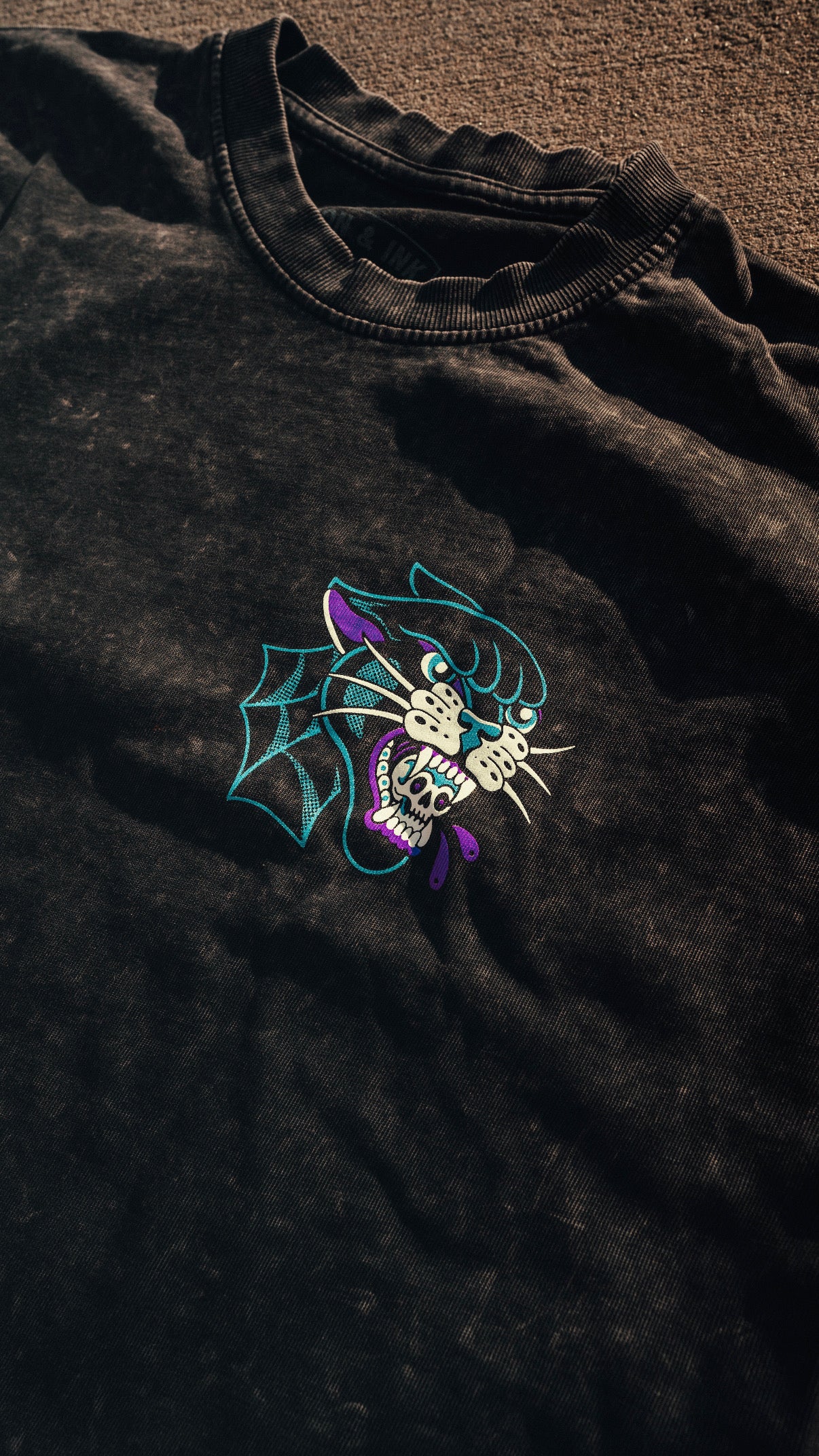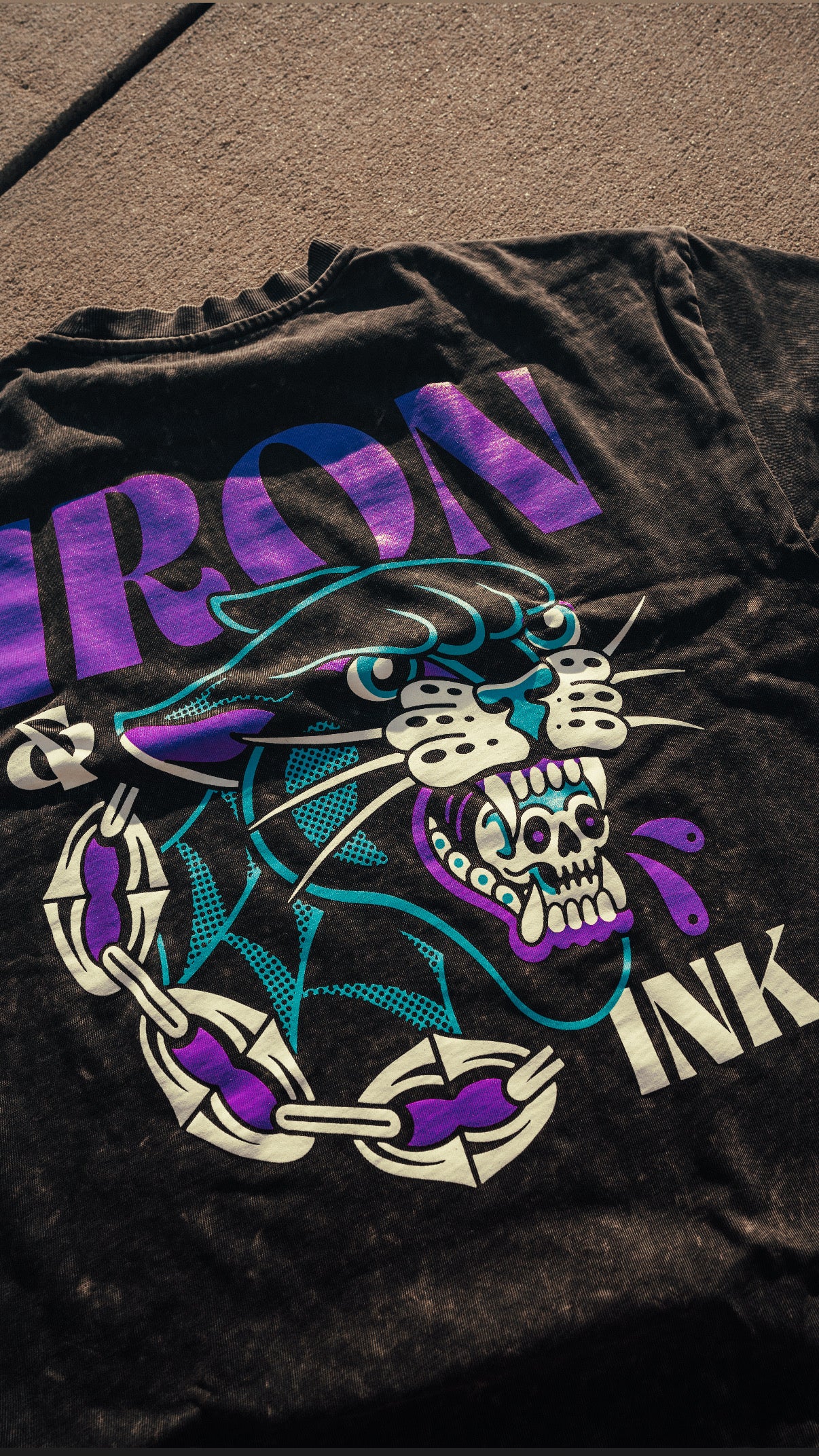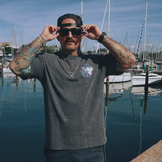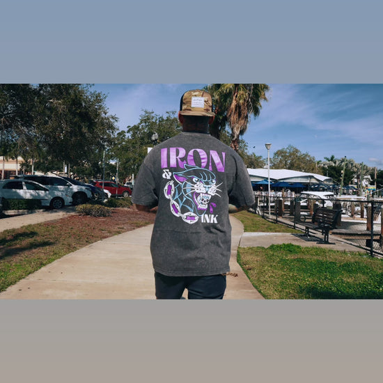 "New" panther chains shirt- oversized Tee in acid wash grey