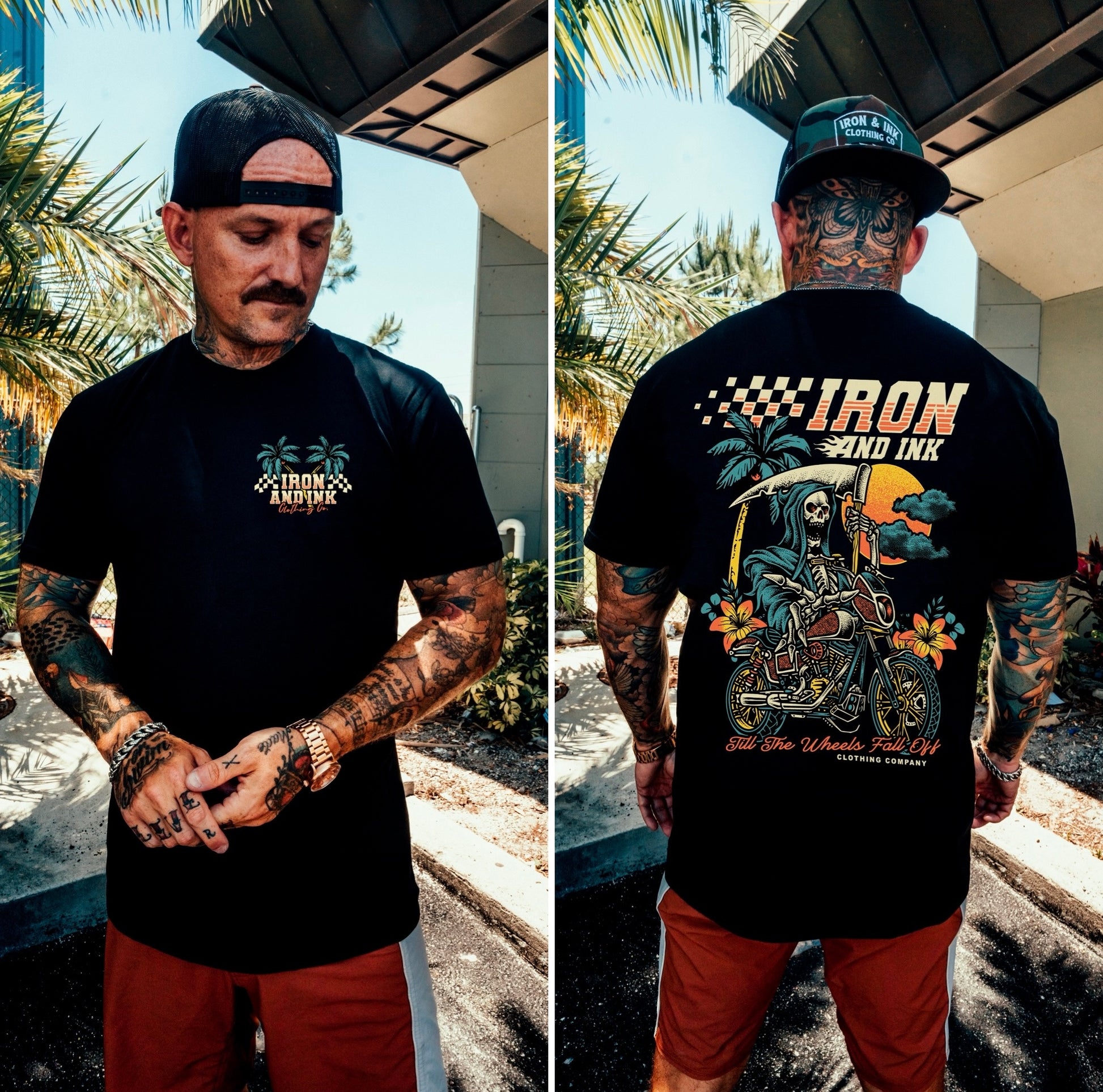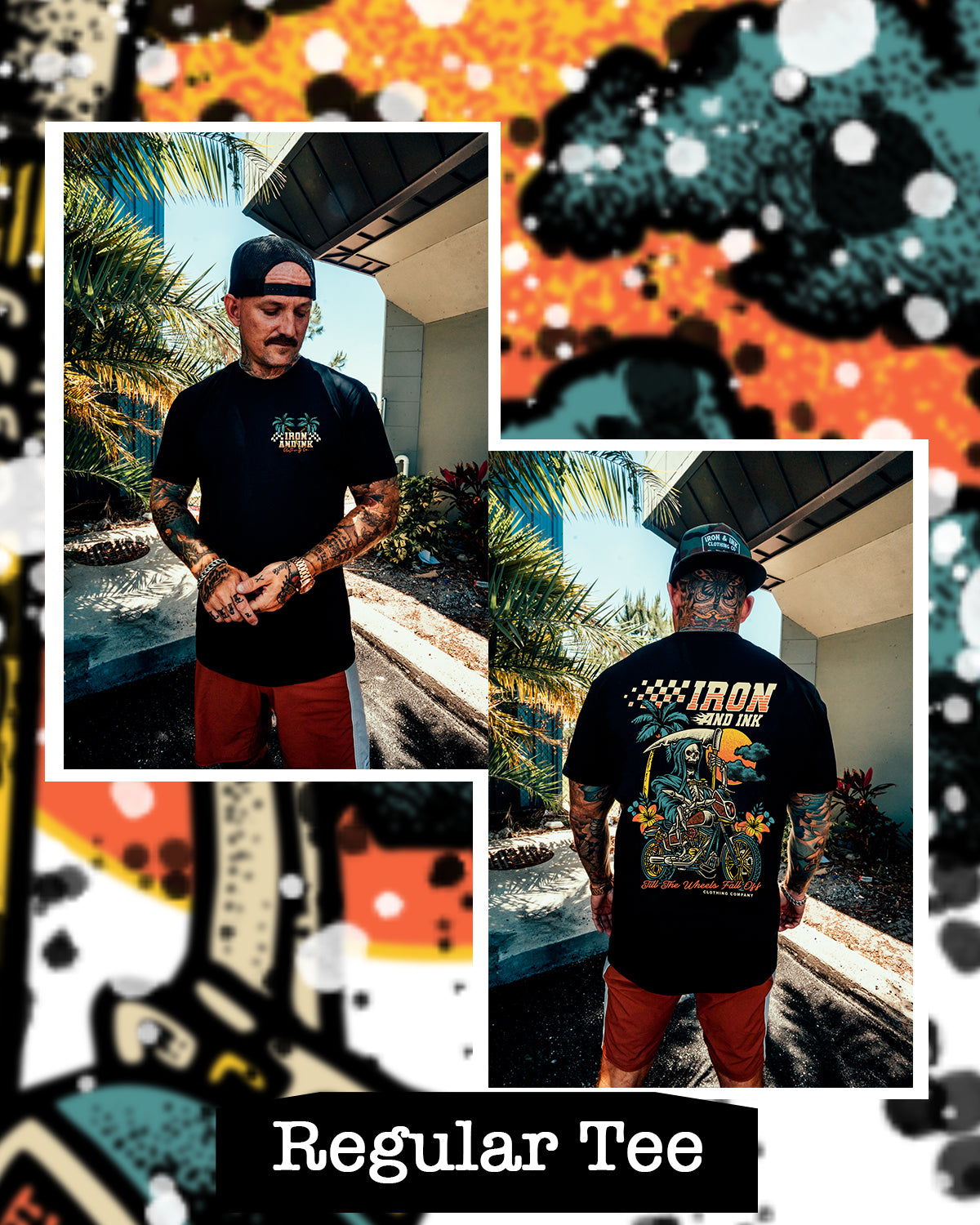 Neck ribbing, side seamed, shoulder to shoulder tape, double needle hems, preshrunk to minimize shrinkage