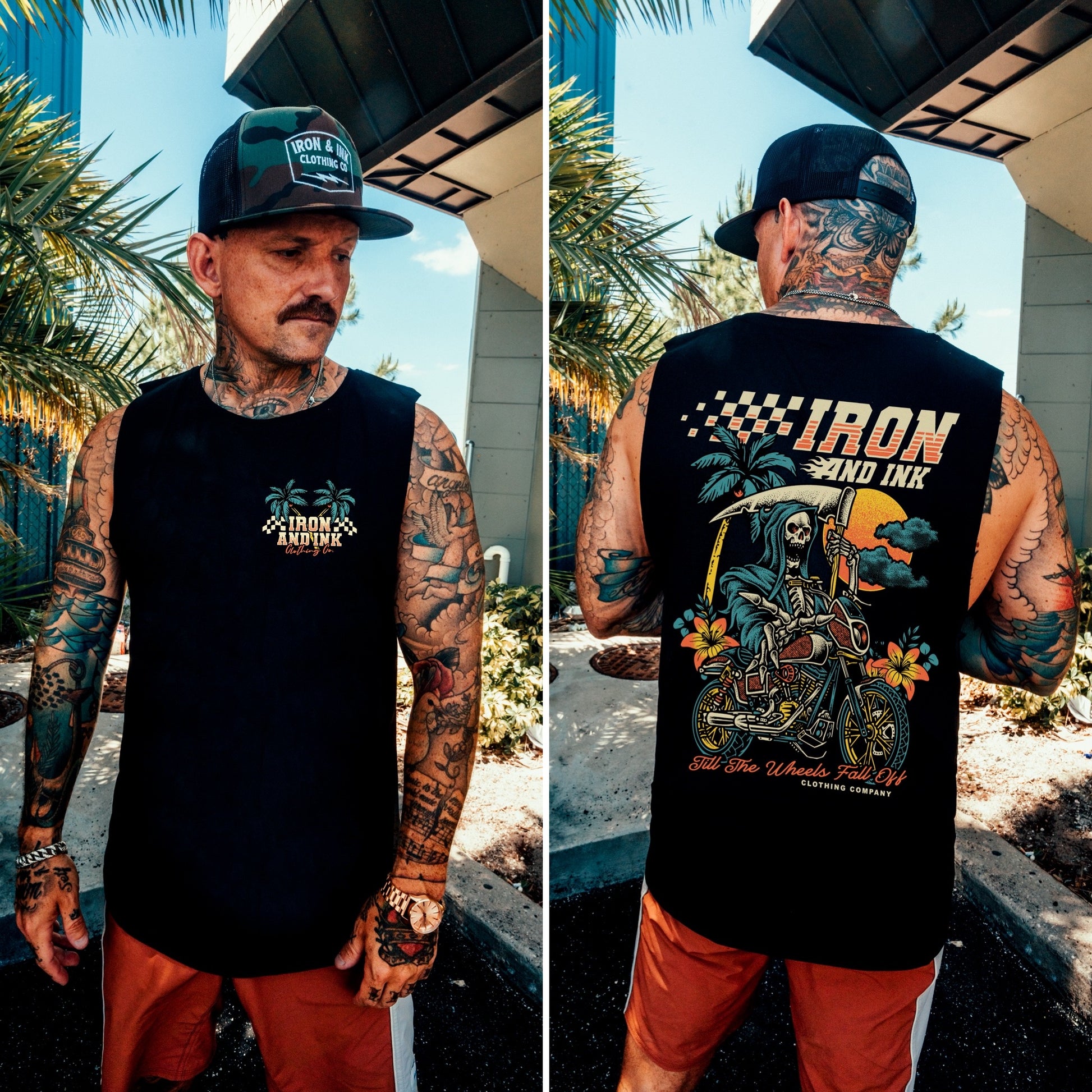 Sleeveless tank, raw armhole edges, neck ribbing, double needle bottom hem, preshrunk to minimise shrinkage