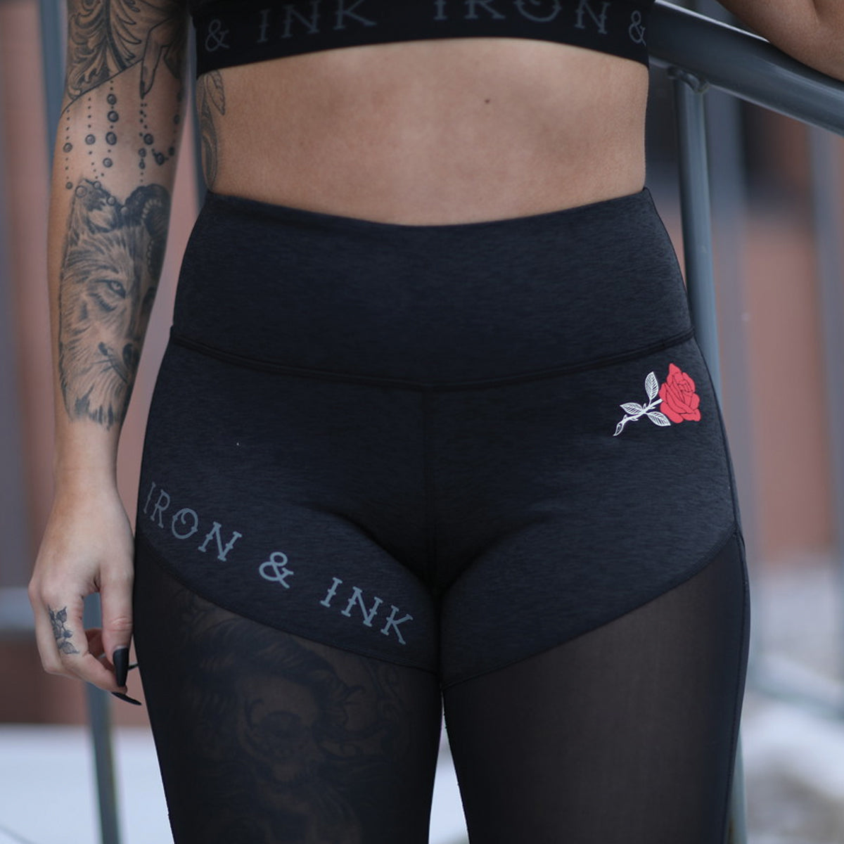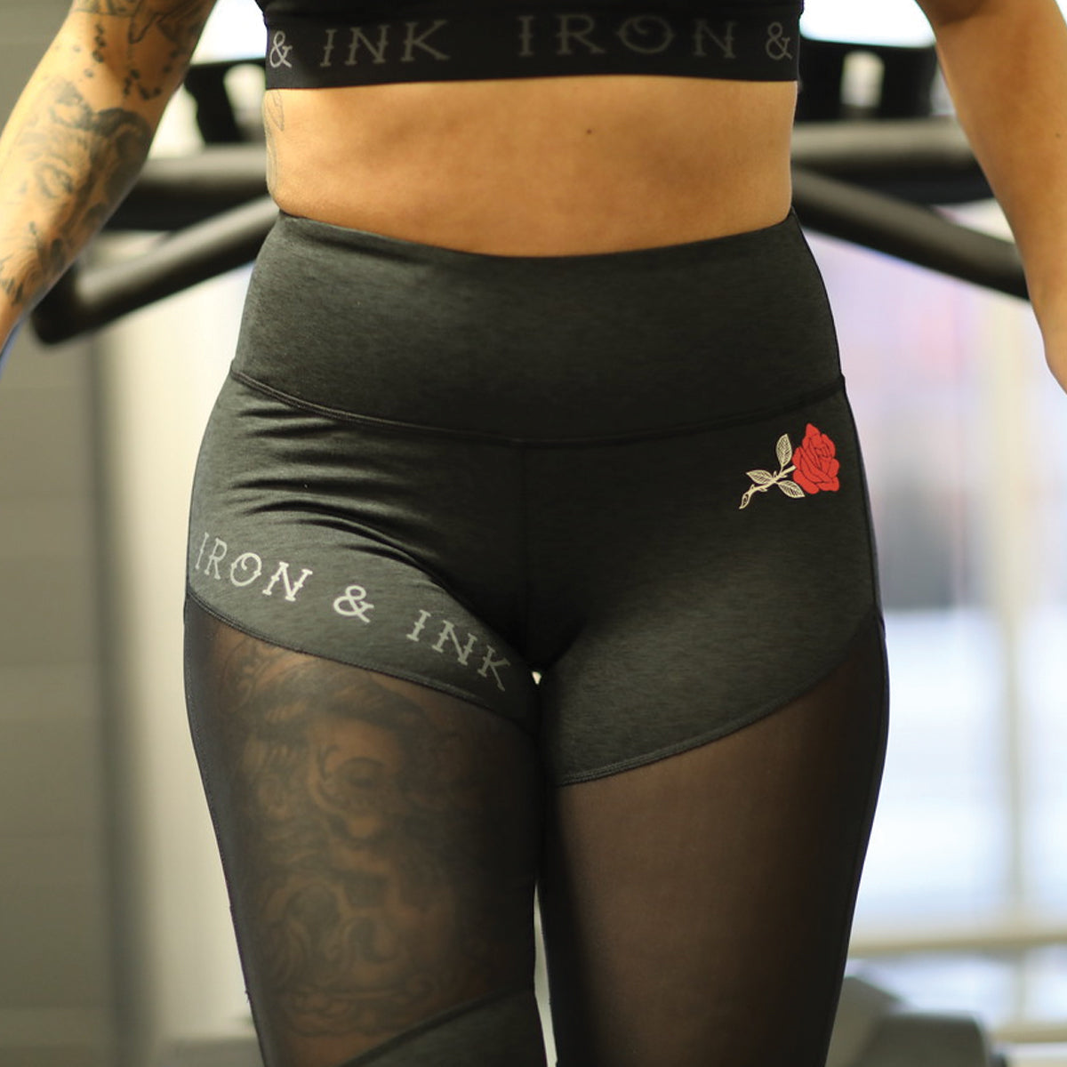 Women's “Rose” Performance Line- High Waisted Leggings- Heather Black